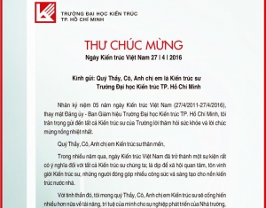 Thư chúc mừng ngày Kiến trúc Việt Nam 27/4 của Thầy Hiệu trưởng Đại học Kiến trúc TP.HCM